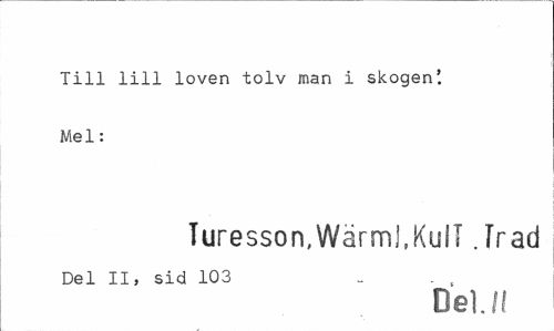 //// Till lill loven tolv man i skogen'. Mel: //// Turesson,Wärml,Kull .Träd //// Del II, sid 103 - s //// Del .11 ////