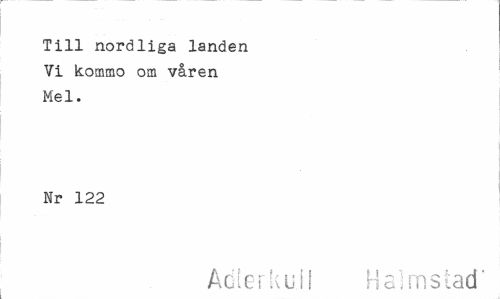//// Till nordliga landen Vi kommo om våren Mel. //// Nr 122 //// Adierku.il Halmstad' ////