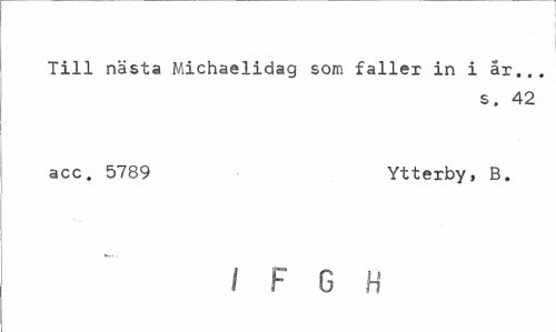 //// Till nästa Michaelidag som faller in i ar... //// s. 42 //// acc. 5789 Ytterby, B. //// I F G H ////