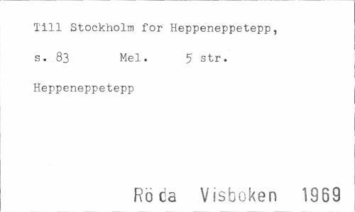//// Till Stockholm for Heppeneppetepp, s. 83 Mel. 5 str. //// Heppeneppetepp //// Röda Visboken 1969 ////