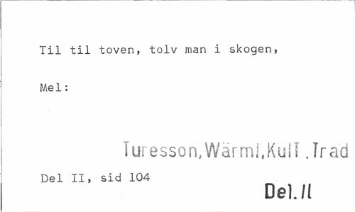 //// Til til toven, tolv man i skogen, Mel: //// Turesson.Wärml.KulT Jr ad //// Del II, sid 104 //// Del./I ////