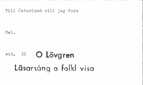 //// Till Österland vill jag fara Mel. //// sid. 36 o Lövgren //// Läsarscmg o folk! visa ////
