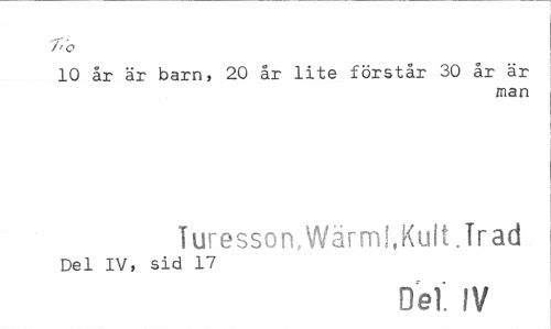 //// 7'Q //// 10 år är barn, 20 år lite förstår 30 år är //// man //// Turesson, Wärml, Kult. Träd //// Del IV, sid 17 //// Del. Il ////