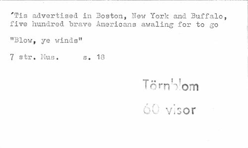 //// 'Tis advertised in Boston, New York and Buffalo, five hundred "brave Americans awaling for to go //// "Blow, je winds" //// 7 str. Mus. s. 18 //// T .. 5 1 //// < o m i om 60 visor ////