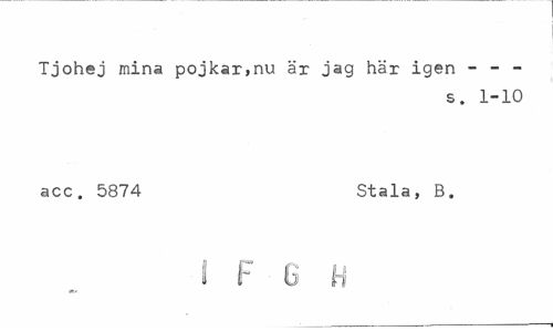 //// Tjohej mina pojkar,nu är jag här igen - - - //// s. 1-10 //// acc. 5874 Stala, B. //// i F G H ////