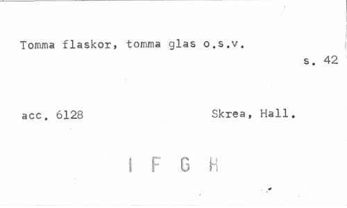 //// Tomma flaskor, tomma glas o.s.v. //// s. 42 //// acc. 6128 Skrea, Hall. //// I F G H ////