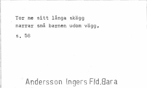 //// Tor me sitt långa skägg narrar små barnen udom vägg, //// s. 58 //// Andersson Ingers Ffd.Sara ////