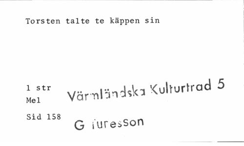 //// Torsten talte te käppen sin //// Ll" VämlandAi Kulturråd 5 //// Sid 158 //// G iuresson ////