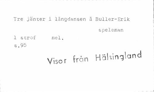//// Tre jänter i långdansen ä Buller-Erik //// s peieman //// 1 strof mel. s.95 //// Visor frön Hälsingland ////