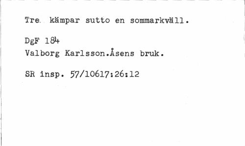 //// Tre. kämpar sutto en sommarkväll. DgF 1&- //// Valborg Karlsson.isens bruk. SR insp. 57/10617:26:12 ////