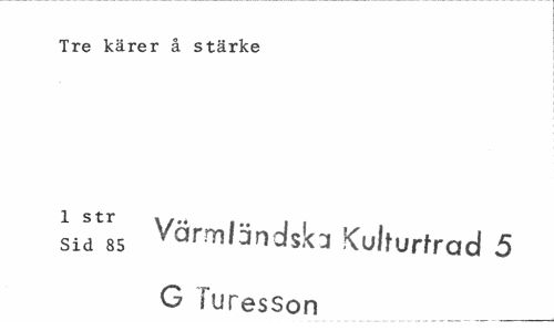 //// Tre kärer å starke //// sidM Värmländsk ci Kulturfrad 5 G Turesson ___ ___ ////