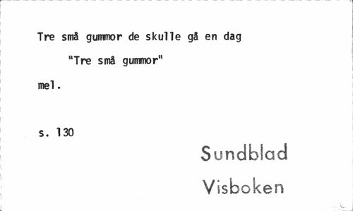 //// Tre små gummor de skulle gå en dag "Tre små gummor" //// mel. s. 130 //// Sundblad //// Visboken //// --. v.. ////