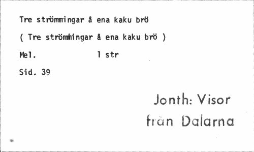 //// Tre strömmingar å ena kaku brö ( Tre strömningar S ena kaku brö ) Mel. 1 str //// Sid. 39 //// Jcnth: Visor frun Dalarna //// m ////