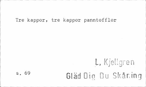 //// Tre kappor, tre kappor panntofflor //// L, Kjellgren s- 69 Gläd Din Du Skåning ////