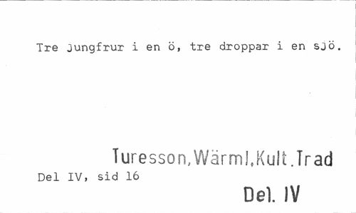 //// Tre jungfrur i en ö, tre droppar i en sjö. //// Turesson, Wärml,Kult .Trad //// Del IV, sid 16 //// Del. IV ////