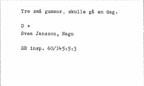 //// Tre små gummor, skulle gå en dag. D + //// Svea Jansson, Nagu SR insp. 60/11*5:5:3 ////