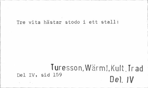 //// Tre vita hästar stodo i ett stall: //// Turesson, Wärm!f Kult. Tr ad //// Del IV, sid 159 , //// Del. /V ////