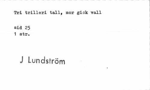 //// Tri trilleri tall, mor gick vall //// sid 25 1 str. //// J Lundström ////