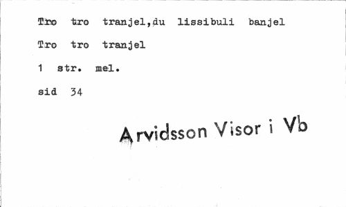 //// Tro tro träng el,du lissibuli banjel Tro tro tranael 1 str. mel. sid 34 //// Arvidsson Visor i Vb ////