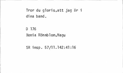 //// Tror du gloris.att jag är i dina band. //// D 176 //// Xenia Rönnblom.Nagu SR insp. 57/11.142:41:16 ////