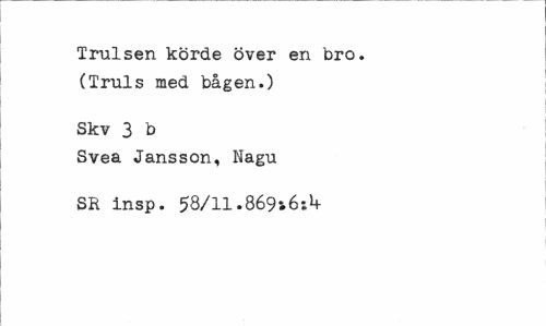 //// Trulsen körde över en bro. (Truls med bågen.) //// Skv 3 b //// Svea Jansson, Nagu SR insp. 58/11.869i6sU- ////