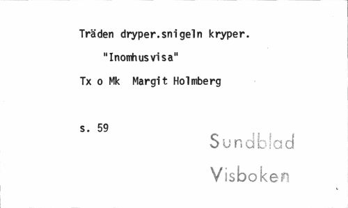 //// Träden dryper.snigeln kryper. //// "Inomhus vi sa" Tx o Mk Margit Holmberg //// s. 59 //// Sundbiad Visboken ////