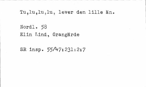 //// Tu,lu,lu,lu, lever den lille än. Nordl. 58 //// Elin Lind, Grangärde SR insp. 55A7:231 s2>7 ////