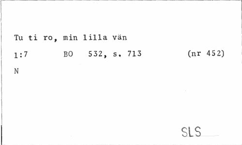 //// Tu ti ro, min lilla vän //// 1:7 BO 532, s. 713 (nr 452) //// N //// SLS ////