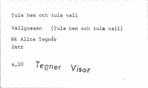 //// Tula hem och tula vall //// Vallgossen (Tula hem och tula vall) //// Mk Alice Tegnér 2str //// s-10 Tegner yISor ////