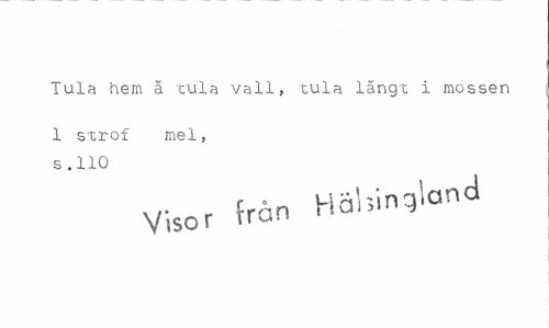 //// Tula hem ä tula vall, tula långt i mossen //// 1 strof mel, s .110 //// Visor från Höland ////