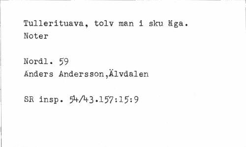 //// Tullerituava, tolv man 1 sku äga. Noter //// Norell. 59 //// Anders Andersson,Älvdalen SR insp. 5**A3•157:15:9 ////