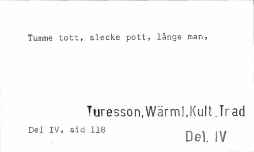 //// Tumme tott, slecke pott, långe man, //// Turesson,Wärml,Kult .Trad //// Del IV, sid 118 ^ , tl, //// Del. IV ////
