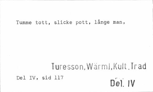 //// Tumme tott, slicke pott, långe man, //// Turesson, Wärml, Kult. Irad //// Del IV, sid 117 . //// Del. IV ////