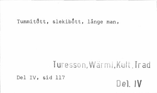 //// Tummitött, slekibott, långe man, //// Turesson, Wärml,Kult. Irad //// Del IV, sid 117 //// Del. IV ////