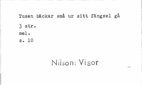 //// Tusen bäckar små ur sitt fängsel gå //// 3 str. mel. s. 10 //// Nilson; Visor ////