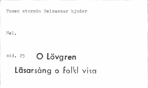 //// Tusen stormän Belsassar bjuder Mel. //// sid. 25 o Lövgren Läsarsång o fol'<l vha ////