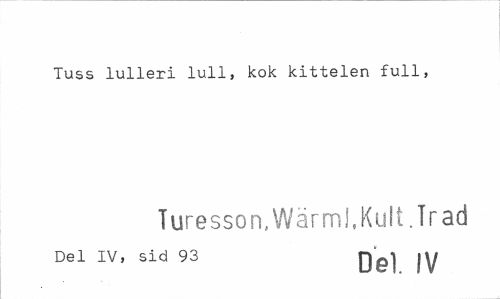 //// Tuss lulleri lull, kok kittelen full, //// Turesson, Wärml, Kylt. Irad //// Del IV, sid 93 g^-j jy ////