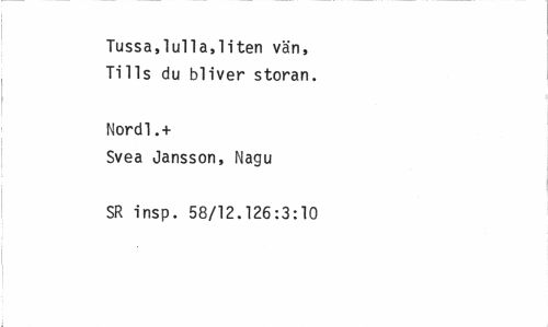 //// Tussa,lul1 a,1 i ten vän, Tills du bliver storan. //// Nord!.+ //// Svea Jansson, Nagu SR insp. 58/12.126:3:10 ////