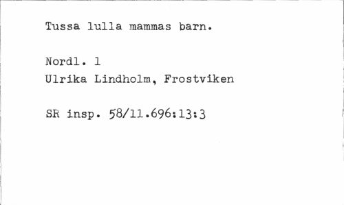//// Tussa lulla mammas barn. Nordl. 1 //// Ulrika Lindholm, Frostviken SR insp. 58/11.696:13:3 ////