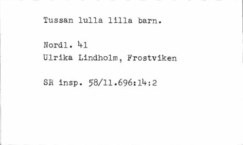 //// Tussan Tulla lilla barn. Nordl. l+l //// Ulrika Lindholm, Frostviken SR insp. 58/11.696:1*+:2 ////