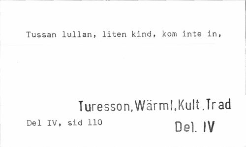 //// Tussan lullan, liten kind, kom inte in, //// Turesson, Wärml, Kult. Trad //// Del IV, sid 110 jy ////