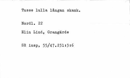 //// Tusse lulla långan skänk. Nordl. 22 //// Elin Lind, Grangärde SR insp, 55/47.231:3:6 ////