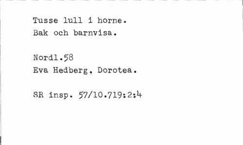 //// Tusse lull i horne. Bak och barnvisa. //// Norell. 58 //// Eva Hedberg, Dorotea. SK insp. 57/10.719:2tb ////
