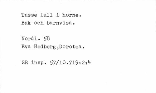 //// Tusse lull i horne. Bak och barnvisa. //// Nordl. 58 //// Eva Hedberg,Dorotea. SR insp. 57/10.719: ////