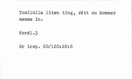 //// Tusilulla liten ting, rätt nu kommer mamma in. //// Norell .3 //// Sr insp. 60/120:22:6 ////