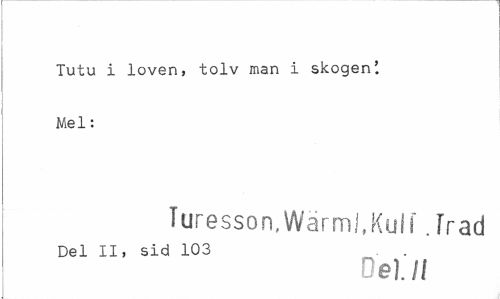 //// Tutu i loven, tolv man i skogen'. Mel: //// Turesson,Warmj,Kuls .[rad //// Del II, sid 103 . . //// 0el II ////