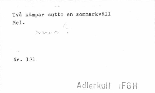 //// Två kämpar sutto en sommarkväll Mel. //// Nr. 121 //// Adierkull IFGH ////