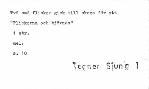 //// Två små flickor gick till skogs för att "Flickorna och björnen" 1 str. mel. s. 18 //// Tecner S;un g 1 ////