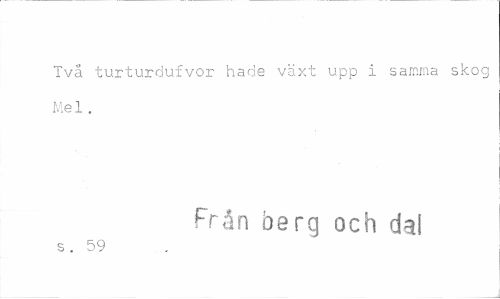 //// Två turturoufvor hade v x upp i samma skog Mel. //// Från berg och da! //// s . 59 ////