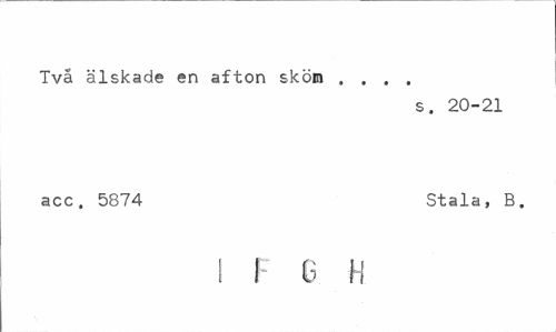 //// Två älskade en afton sköro ... //// s. 20-21 //// acc. 5874 Stala, B. //// I F G H ////